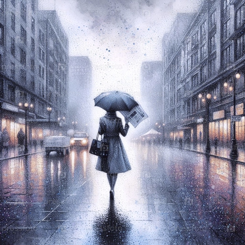 Женщина в акварели с точки дождя, Ai generated image
