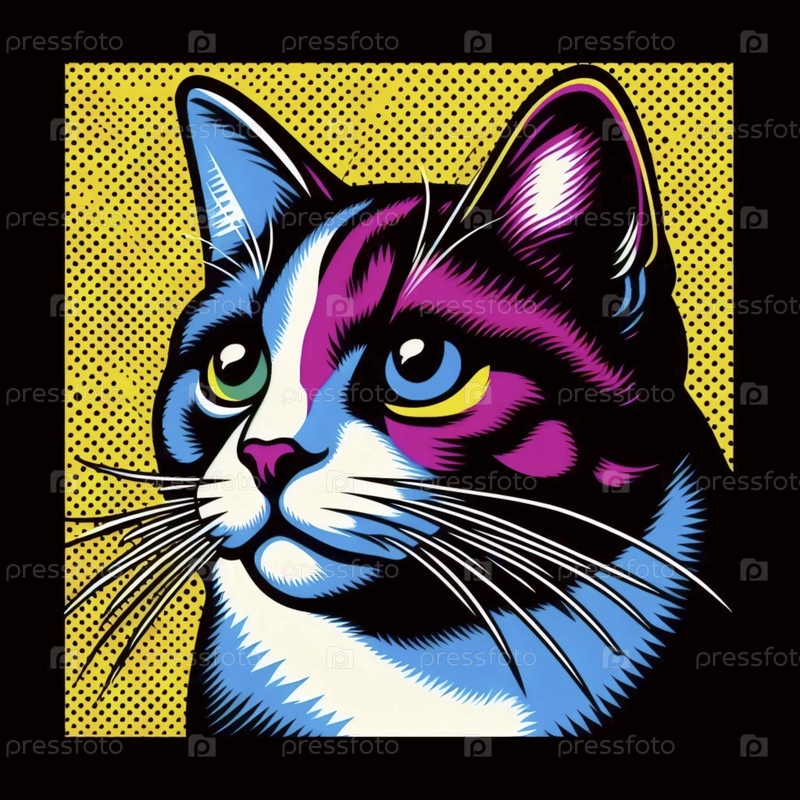 Портрет кота в стиле поп-арта с точками Бен-Дей, Ai generated image
