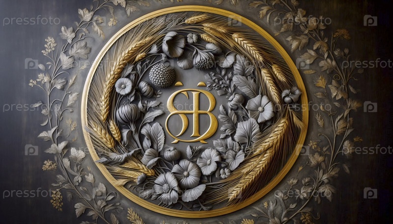 Монограмма Chi Rho в короне из диких цветов, серого и золотого цвета, Ai generated image