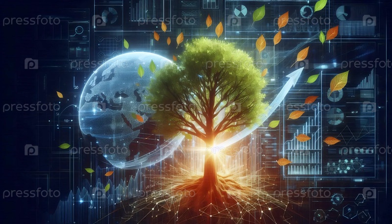 Инфографика города и деревянного роста, изображение, созданное искусственным интеллектом