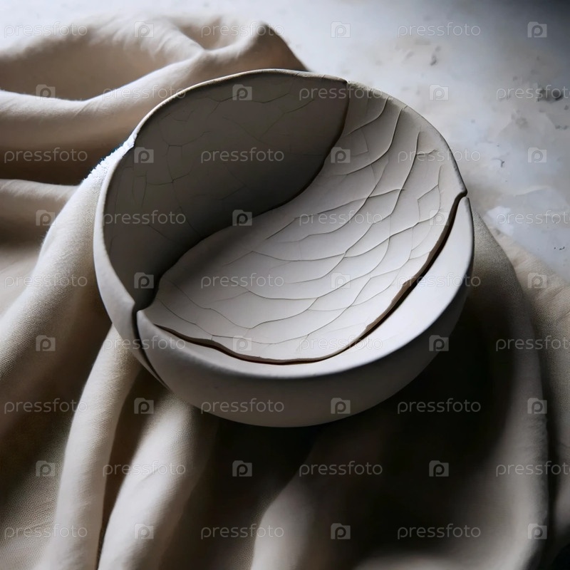 Ручная керамическая чаша с трещинами Wabi-Sabi, Ai generated image