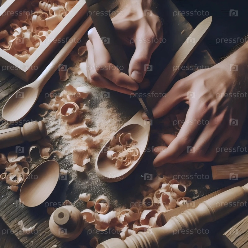 Вырезание деревянной ложки, Ai generated image