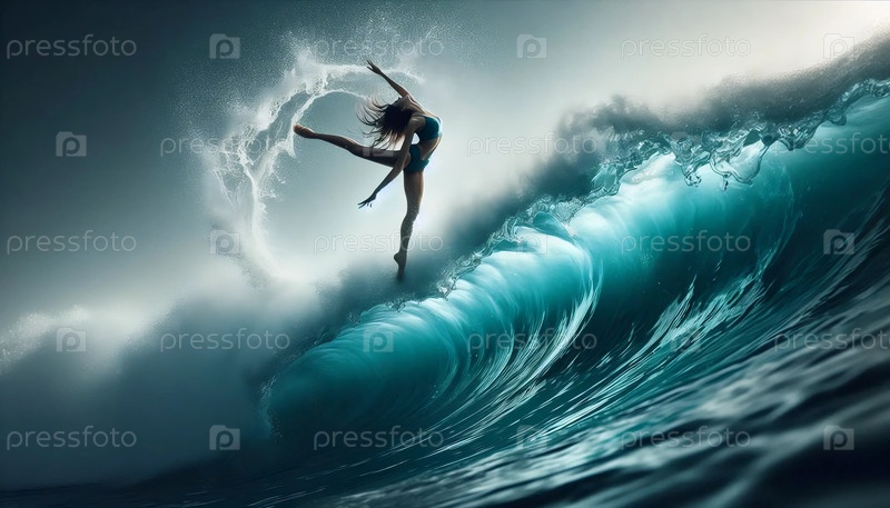 Балерина на вершине разбивающейся океанской волны, Ai generated image