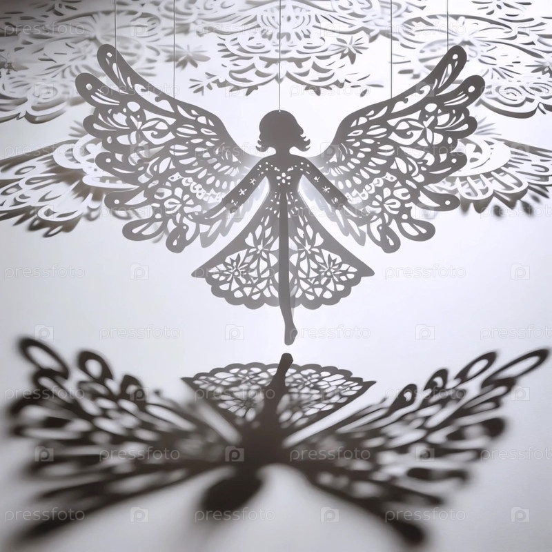 Силуэт ангела из вырезанной бумаги со светом, проходящим через него, Ai generated image