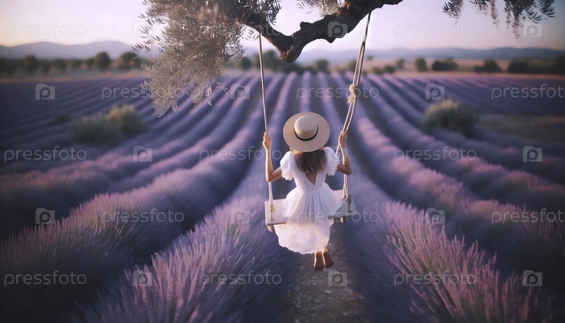 Ребенок, качающийся в солнечном поле лаванды, Ai generated image