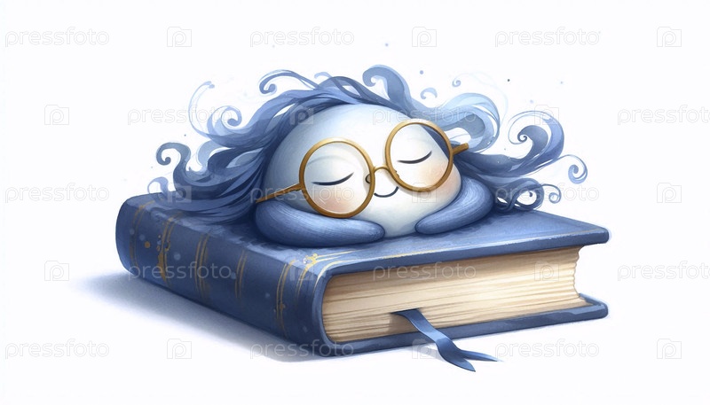 Акварельный арт-принт Sleepy Book, Ai создал изображение A