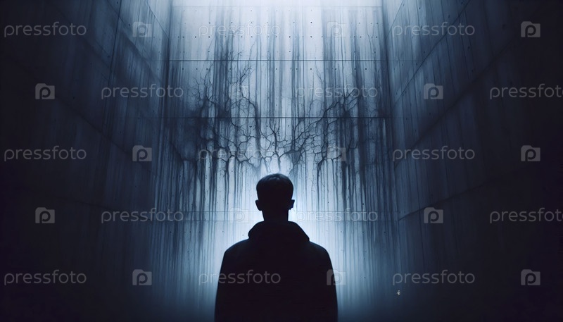 Силуэт в утреннем тумане на абстрактной городской стене, Ай создал изображение