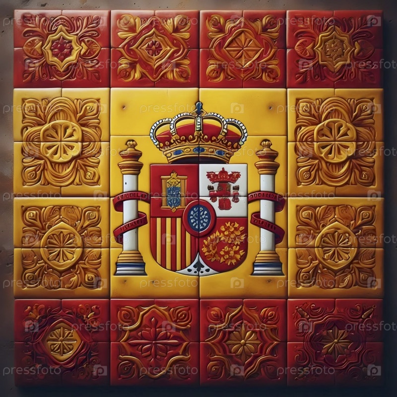 Испанский флаг, сделанный из традиционных керамических плиток, Ai generated image