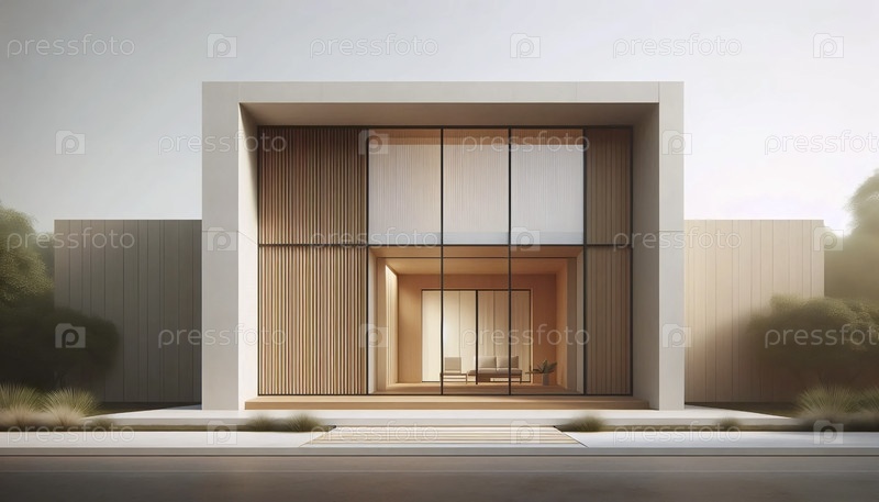 Нейтральный фотоотпечаток современного дома середины века, Ai generated image