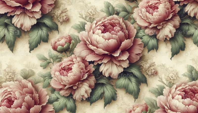 Бесшовный узор винтажных пионьев, Ai generated image