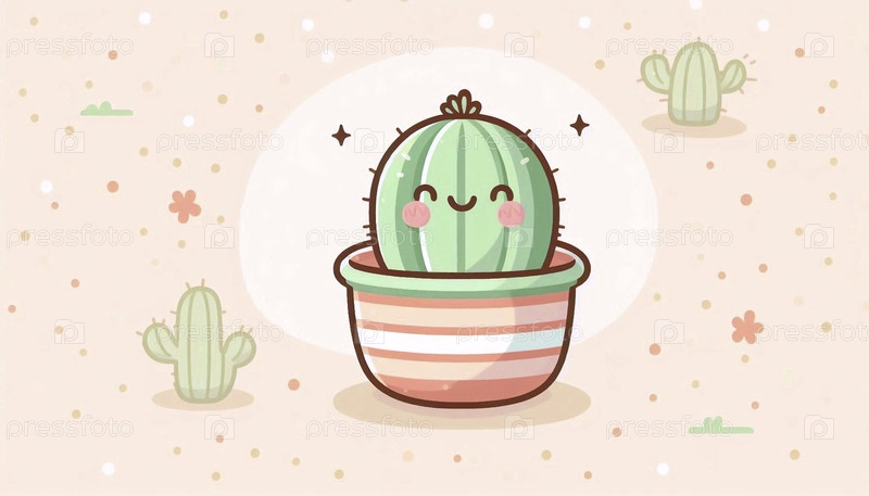 Счастливый кактус в крошечном горшке, Ai generated image