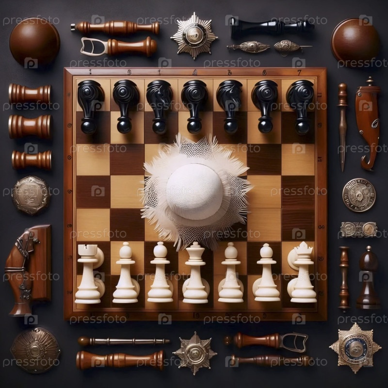 Шахматная доска с личными предметами в качестве фигур, Ai generated image A