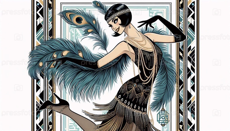 Пин-ап девушка, одетая как флапер 1920-х годов с перьями боев, Ai generated image