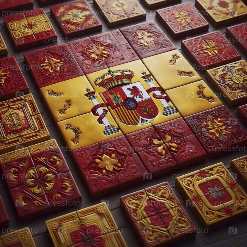 Испанский флаг, сделанный из традиционных керамических плиток, Ai generated image