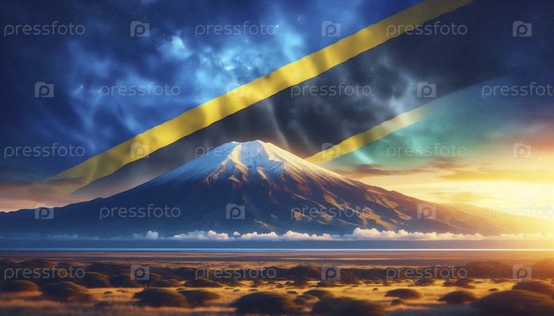 Флаг Танзании в Маунт Килиманджарос величественный пик, Ai generated image A