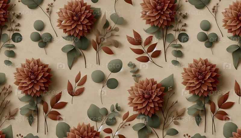 Терракотовая цветная осенняя цифровая бумага в зеленых и оранжевых цветах, Ai generated image