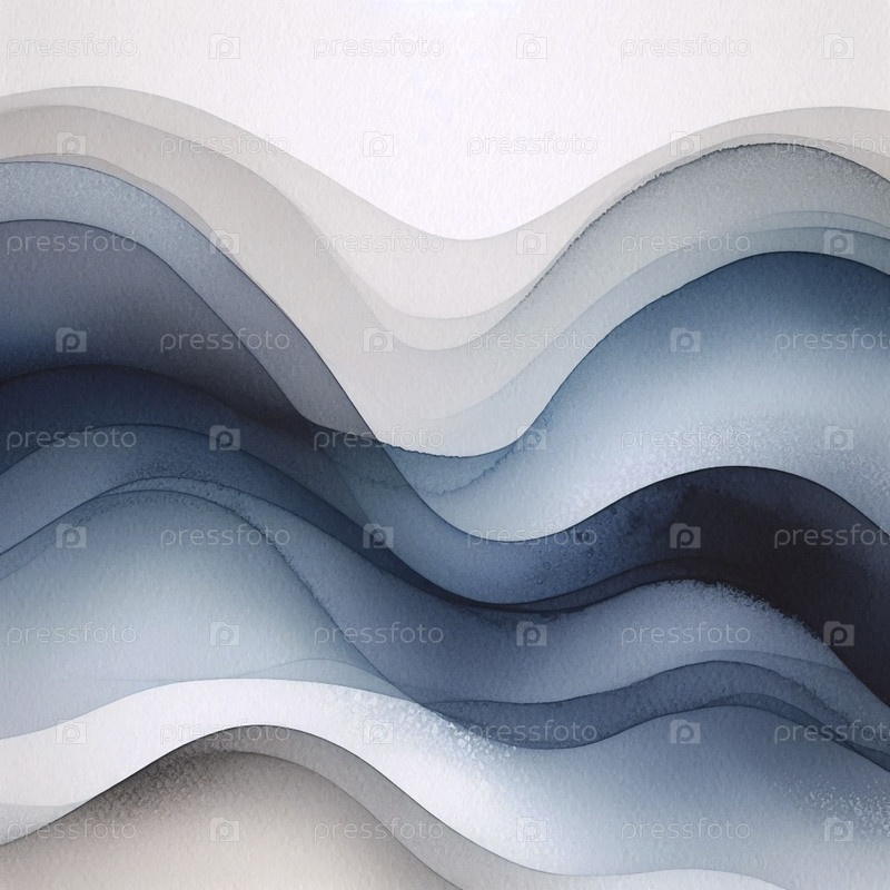 Абстрактные волновые акварели в индиго и креме, Ai generated image