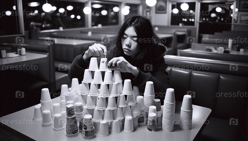 Замок, построенный из пустых чашек кофе, Ai generated image