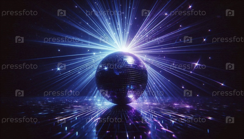 Сцена в ночном клубе с одним гигантским дискотечным шаром, отражающим красочные лазерные лучи во всех направлениях, Ai generated image