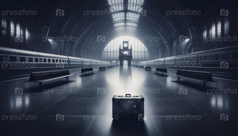 Одинокий чемодан на вокзале, Ai generated image