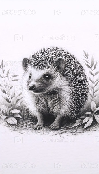 A curious hedgehog ink drawing art print, Ай создал изображение