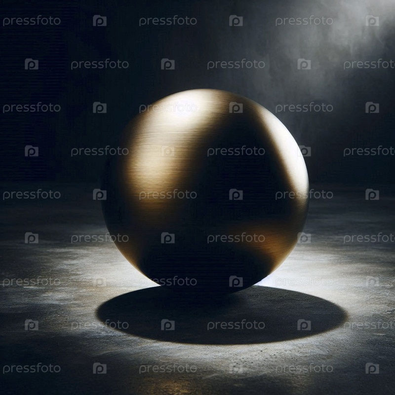Мокет твердой бронзовой сферы на грубом темном бетонном полу, Ai generated image