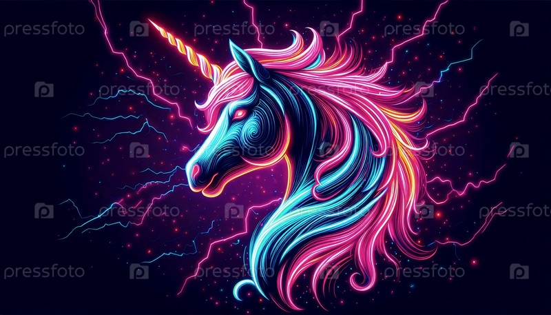 Единорог в неоновых цветах, Ai generated image