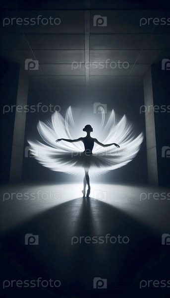 Широкий снимок в темной студии, размытый танцор как световой вихрь, Ай создал изображение
