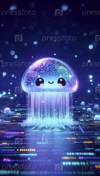 Кавайский персонаж неоновой медузы в киберморе, Ai generated image