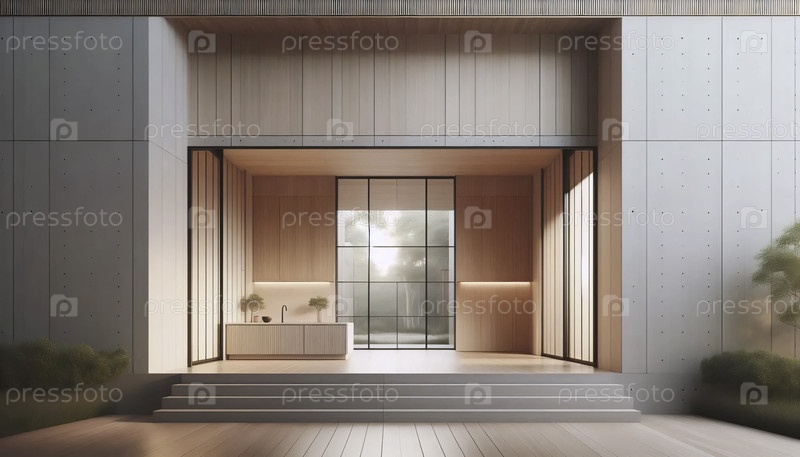 Нейтральный фотоотпечаток современного дома середины века, Ai generated image