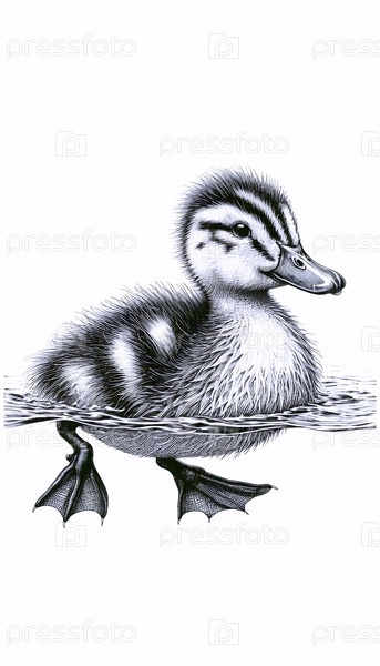 рисунок с чернилами уток-плаватель
