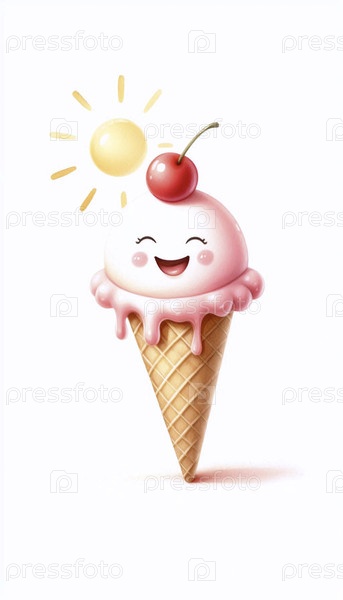 A Joyful Ice Cream акварельный художественный печат, Ai generated image