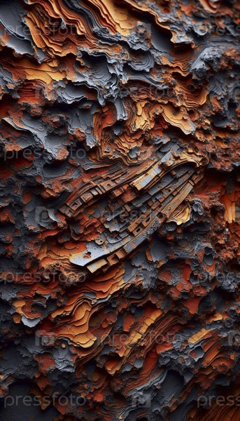 Макромокап выветрившейся ржавой железной пластины, показывающей сложные образцы коррозии и очистки краски, Ai generated image