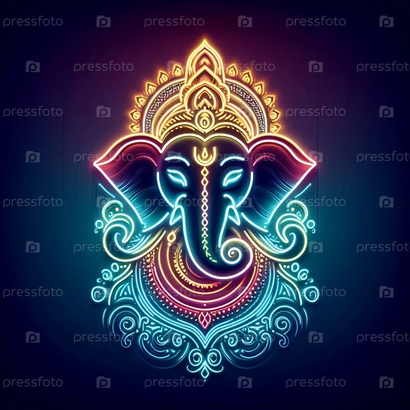 Господь Ганеша с неоновым светом, Ai generated image A