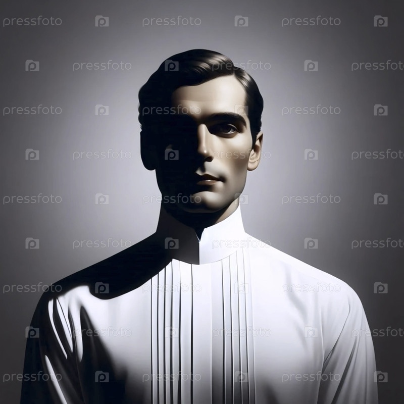 Портрет, где человек смотрит вперед, ошейник теней - единственный драматический элемент, Ай создал изображение