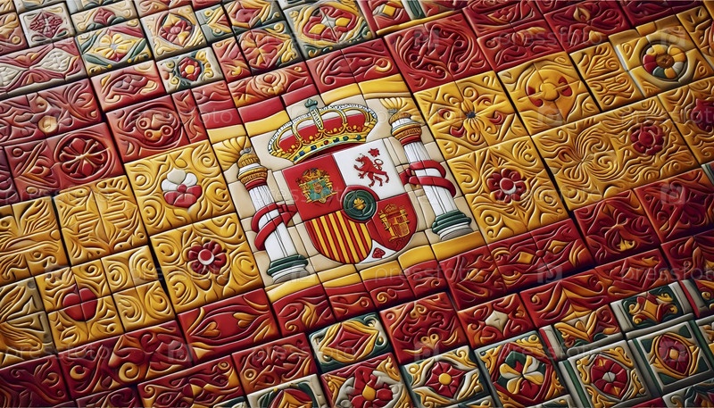 Испанский флаг, сделанный из традиционных керамических плиток, Ai generated image