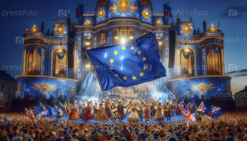 Флаг Европейского Союза в культурном фестивале разнообразие, Ai generated image A