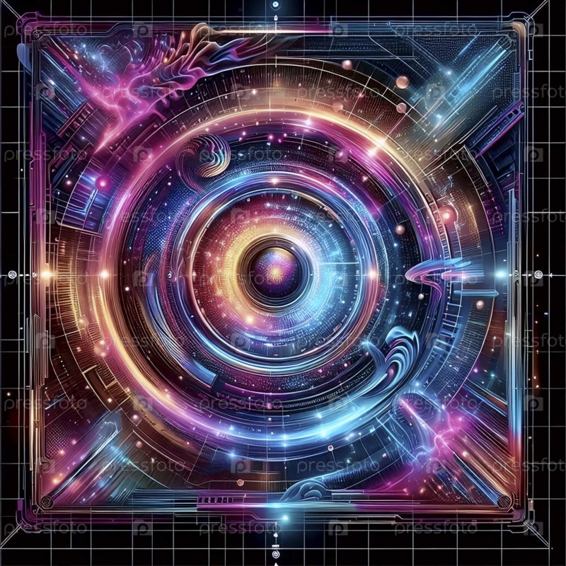 Футуристическая астрономическая голографическая наклейка, Ai generated image
