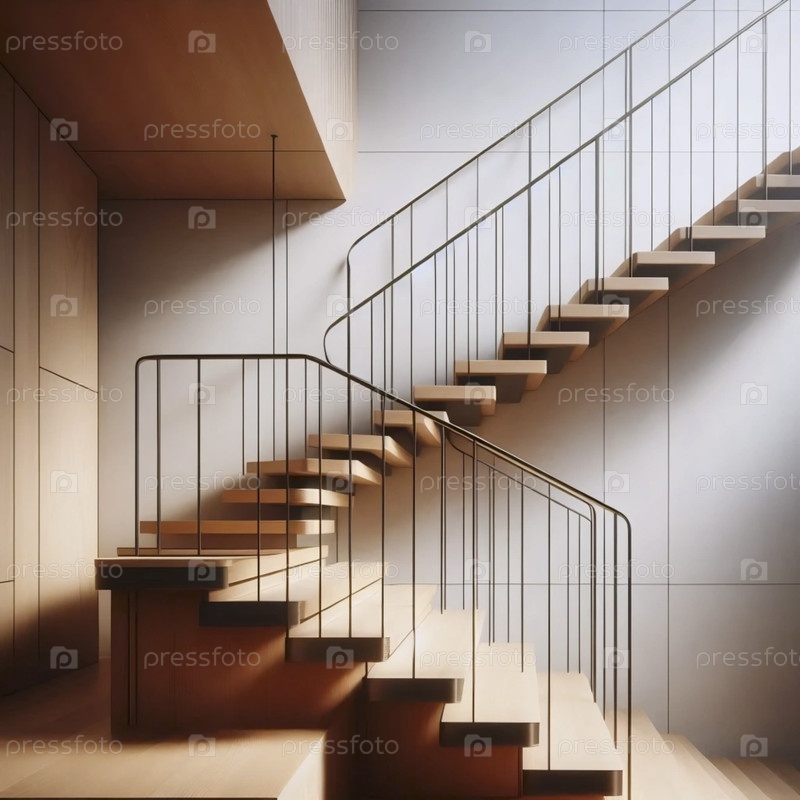 Архитектурный подробный снимок современной лестницы середины века, Ai generated image