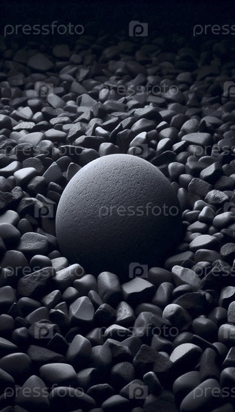 Совершенно гладкий овальный речной камень, помещенный на ложе грубого неровного гравия того же цвета, Ai создал изображение