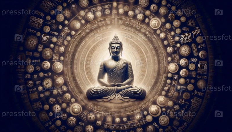Будда с мантрами, Ai generated image