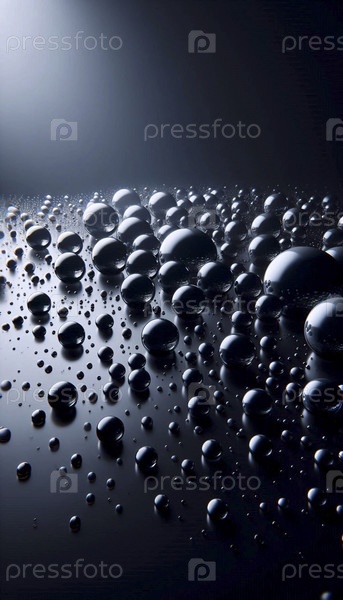 Образец капель дождя на совершенно плоской черной стеклянной поверхности, расположенных в случайном и тем не менее ритмичном рассеивании, Ai создал изображение
