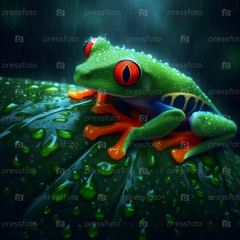 Красноглазая деревянная лягушка ночью, Ai generated image