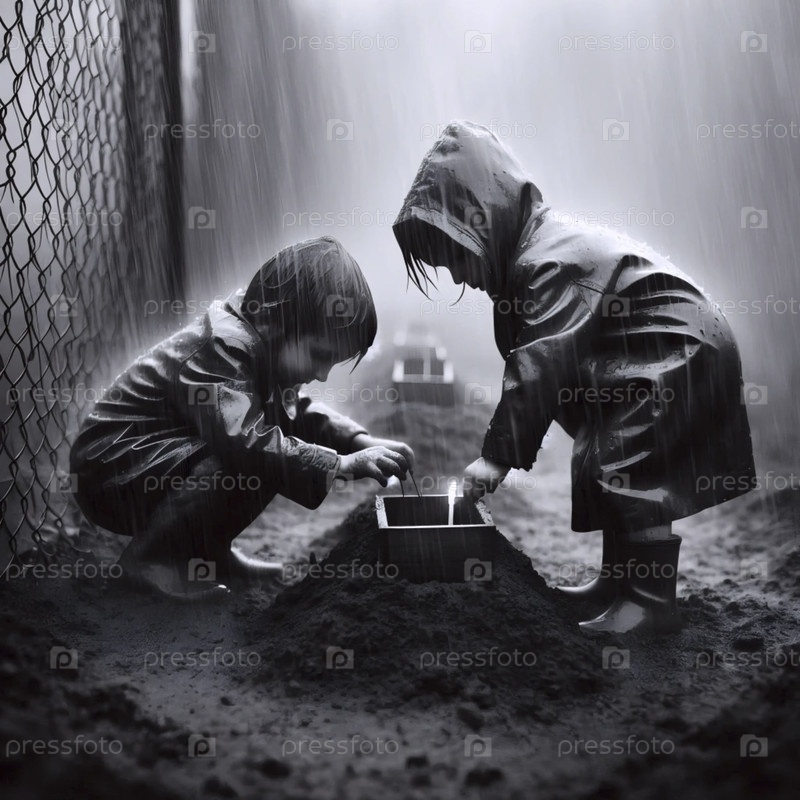 Два ребенка похоронили птицу в коробке с спичками, Ai generated image
