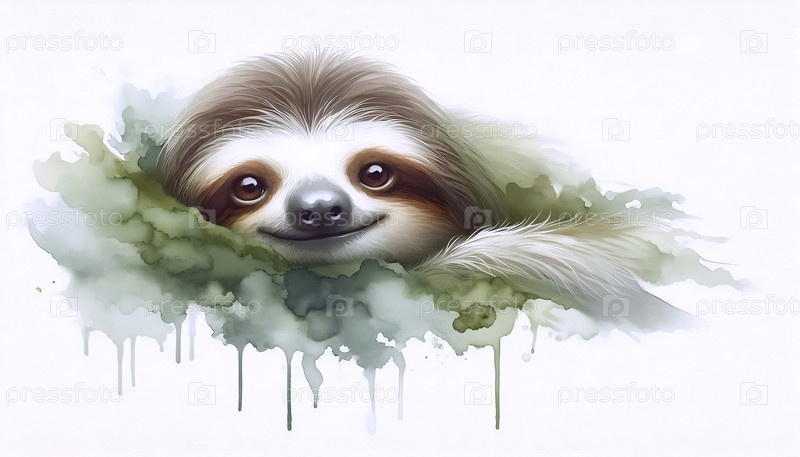 Cute Sloth акварельный художественный печат, Ai generated A image