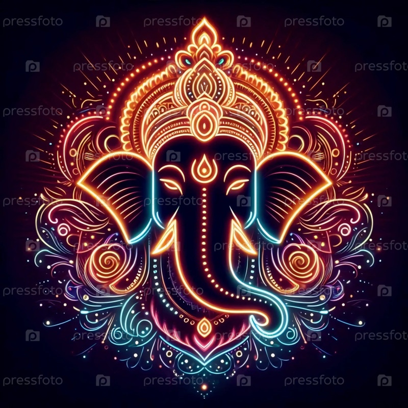 Господь Ганеша с неоновым светом, Ai generated image A
