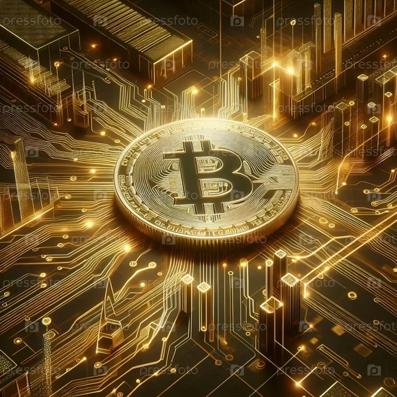 Биткойн и графики роста фондового рынка, Ai generated image