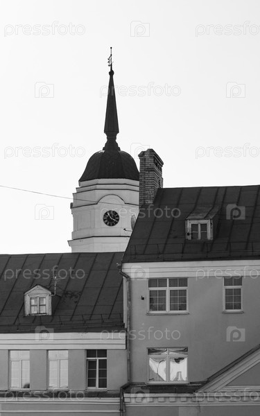 Черно-белая фотография улицы со старыми домами в Могилеве, Беларусь