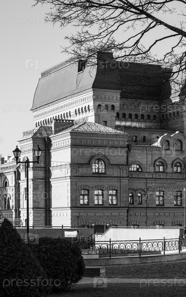 Черно-белая фотография старого Могилевского Областного Драматического Театра в Могилеве, Беларусь
