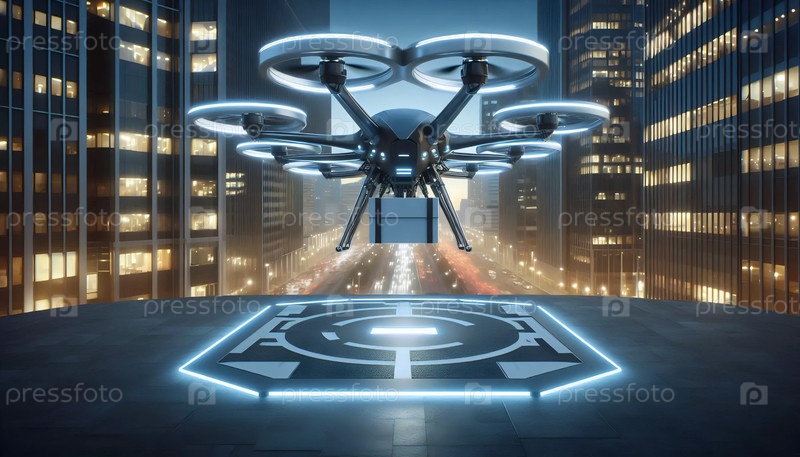 Самолет доставки беспилотного летательного аппарата, запускающийся с крышной площадки, Ai generated image